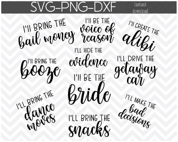 I’ll Be the Bride Svg, Bridal Party Bundle Svg, Bachelorette Party