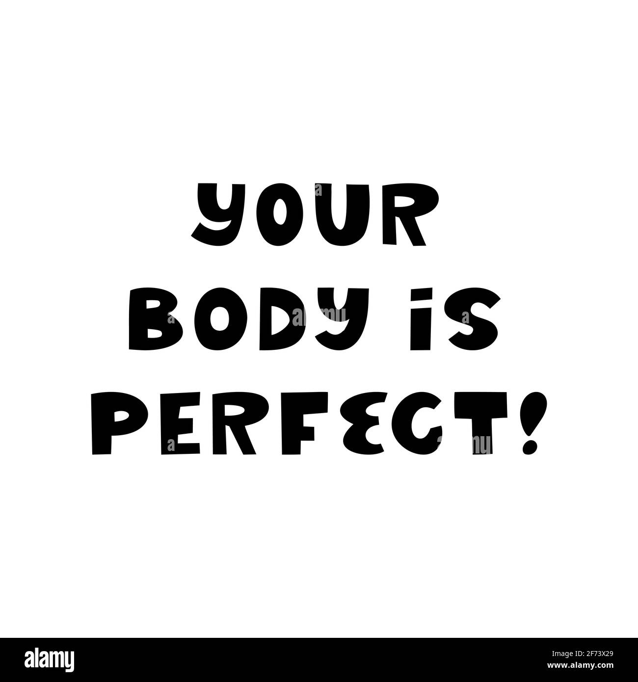 Your body is perfect. Cute hand drawn lettering isolated on white